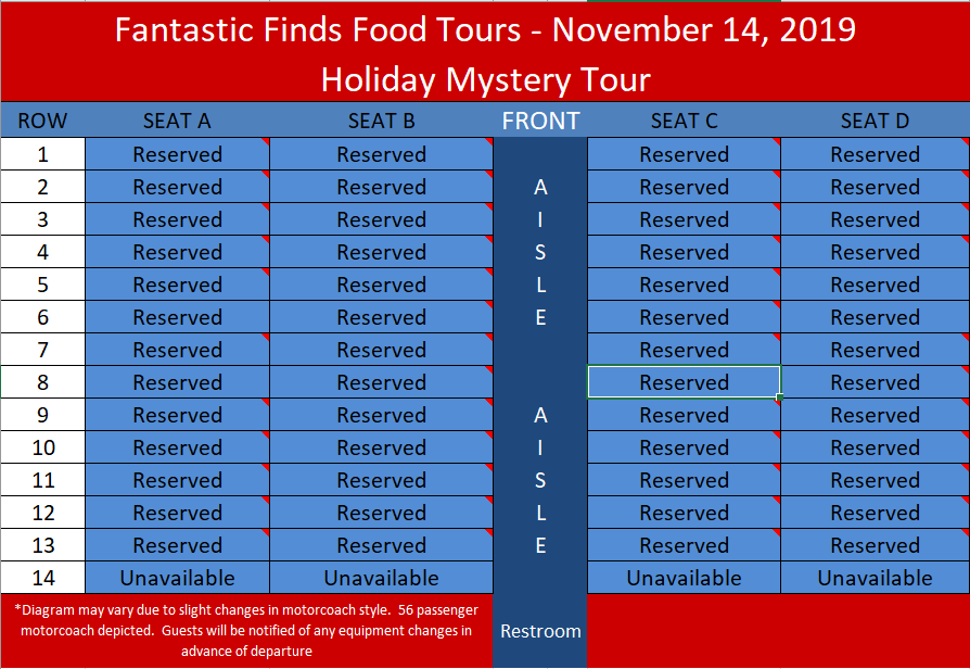 Please make your seat selection and indicate it on the order form, along with any other members of your traveling party. We will do our best to accommodate your selection. When you receive your email confirmation, you can consider your seats assigned. If there are any conflicts, a separate email will be sent to you with your alternate seat assignments.