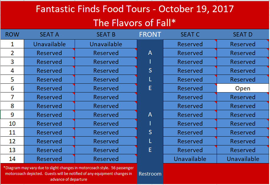 Please indicate your seat selection and indicate it on the form at check out.